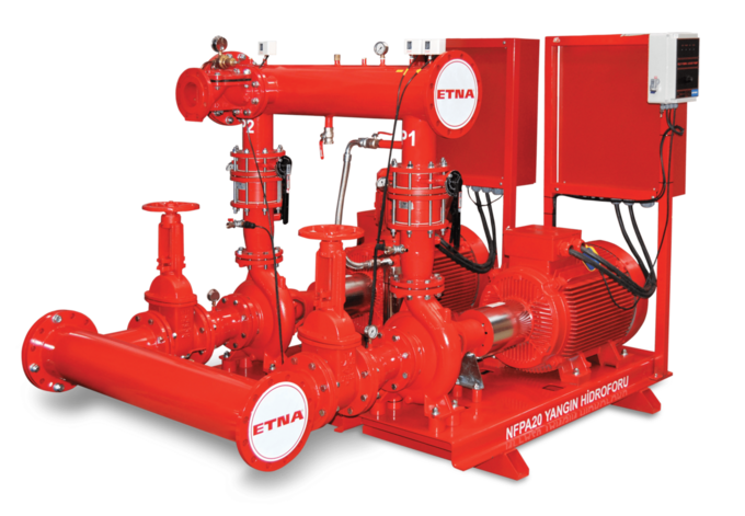 YANGIN POMPASI, YANGIN ANINDA BAĞLI OLDUĞU SU KAYNAĞINDAN YANGIN SÖNDÜRME TESİSATINA, ÖNCEDEN HESAPLANMIŞ BİR BASINÇLA SU AKTARAN VE SİSTEMİ BESLEYEN BİR EKİPMANDIR. KONTROL ALTINA ALINAMAYAN YANGINLAR MADDİ KAYIPLARIN YANI SIRA CAN KAYBI OLUŞMASINA VE ÇEVRESEL ZARARLARA DA YOL AÇABİLİR. BU SEBEPLE YANGIN POMPALARI, YANGINLA MÜCADELEDE YANGININ BAŞLANGIÇ AŞAMASINDA DEVREYE GİREREK YANGININ BÜYÜMESİNİ ENGELLEYEN VE KISA SÜREDE ETKİLİ BİR SONUÇ ALINMASINA YARDIMCI OLAN MAKİNALARDIR. YANGIN POMPASI, YANGIN SÖNDÜRME SİSTEMLERİNE SUYUN SABİT DEBİ VE BASINÇ İLE TEDARİĞİNİ SAĞLAR. YANGIN POMPALARI; YAĞMURLAMA SİSTEMİNİ (SPRİNKLER), YANGIN HORTUM TESİSATINI VE HİDRANT TESİSATINI BASINÇLI SU İLE KESİNTİSİZ BESLER. HER TÜRLÜ GÜVENLİK ÖNLEMİNİN ALINMASINA KARŞIN YANGIN RİSKİ HER ZAMAN BULUNMAKTADIR. YANGIN TEHLİKESİNİ MİNİMİZE ETMEK KADAR YANGIN ANINDA OLUŞABİLECEK ZARARLARI DA EN AZA İNDİRMEK İÇİN YANGIN POMPALARI HAYATİ ÖNEM TAŞIMAKTADIR. SULU YANGIN SÖNDÜRME SİSTEMLERİNDE KİLİT BİR ROL OYNAYAN YANGIN POMPALARI BİR KONTROL PANOSU İLE KUMANDA EDİLİR. YANGIN POMPALARI, DİZEL VEYA ELEKTRİK TAHRİKLİ MOTOR İLE ÇALIŞMAKTADIR VE OLASI BİR TEHLİKE ANINDA TAM BİR GÜVENLİK SAĞLAYABİLMESİ İÇİN ANA POMPANIN YANI SIRA AYNI KAPASİTEDEKİ YEDEK POMPA VE JOKEY POMPA OLARAK ÜÇ PARÇADAN OLUŞMASI GEREKMEKTEDİR. YEDEK POMPA ANA POMPADA HERHANGİ BİR SORUN OLUŞMASI HALİNDE YANGIN ANINDA DEVREYE GİREREK İSTENMEYEN KAYIPLARIN ÖNÜNE GEÇER. ÖRNEĞİN ELEKTRİKLİ VE DİZEL SEÇENEKLERİ BULUNAN YANGIN POMPALARINDA ANA POMPA ELEKTRİKLİ SEÇİLİRKEN ELEKTRİK KESİNTİLERİNE KARŞI YEDEK POMPA DİZEL TAHRİKLİ OLARAK SEÇİLİR. EĞER BİNA VEYA TESİSTE YANGIN POMPASINI BESLEYECEK KAPASİTEDE JENERATÖR MEVCUTSA, YEDEK POMPA DA ELEKTRİK BESLEMELİ OLABİLİR.